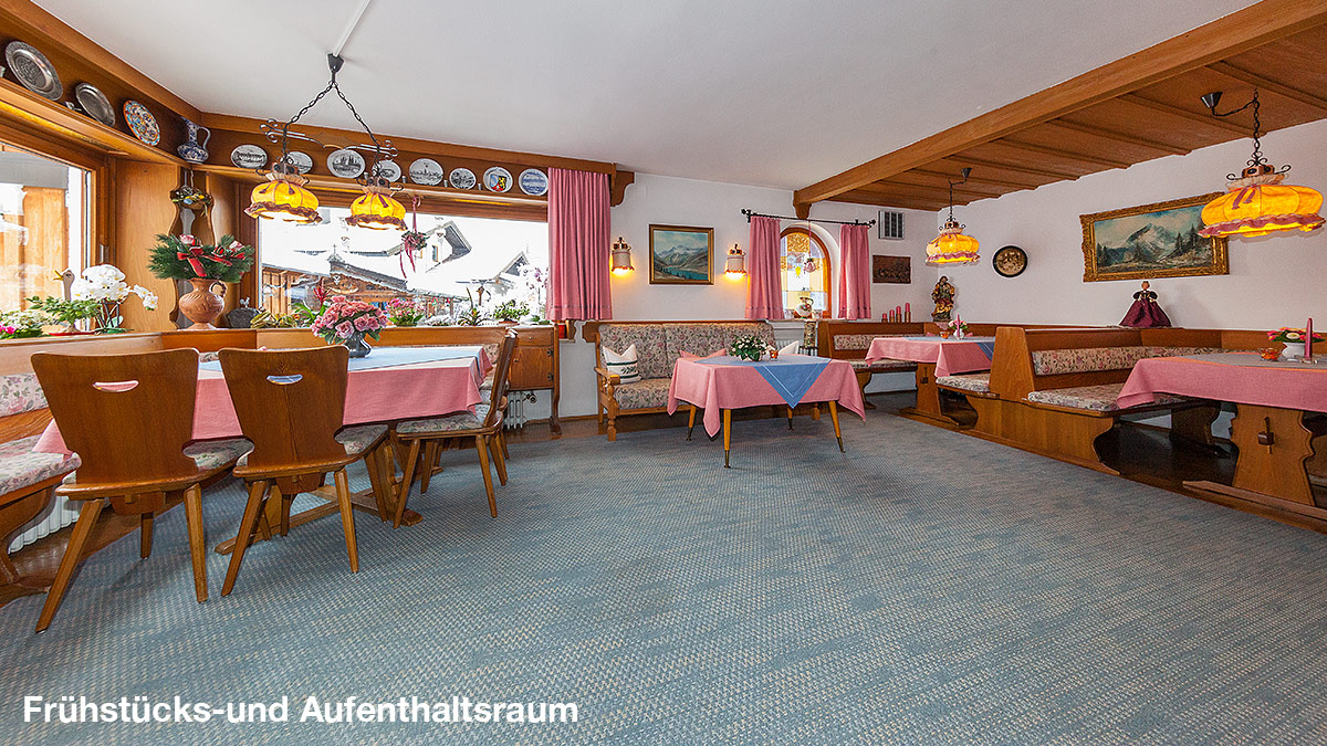 Im Frühstücks- und Aufenthaltsraum erwartet Sie ein reichhaltiges Frühstück.